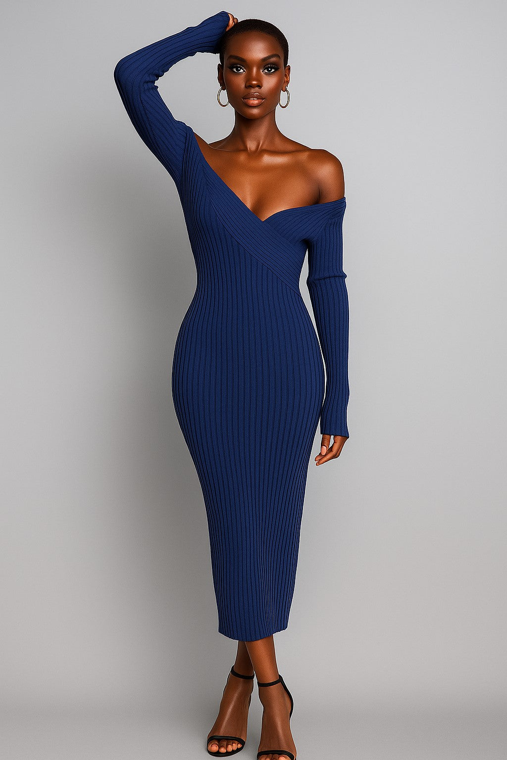 This ribbed dress is super cute, sexy, stretchy and it's Perfect for Fall/Winter Season! I love the color as well! (true to size)   Color: Classic Blue (Very Nice Navy Blue Color) 70% Rayon / 30% Nylon (Very Nice Fabric)